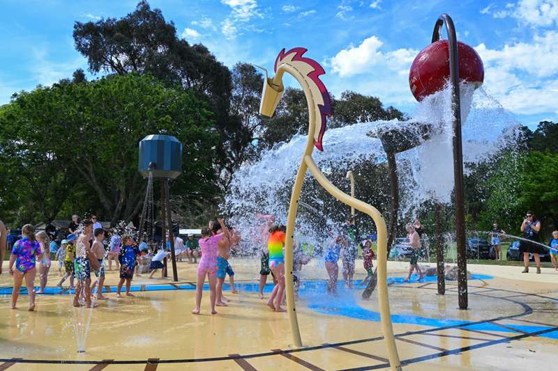 The free splash park, with a gold mining theme, features interactive water jets, tipping buckets and ground sprays providing a fun and safe way for children to cool off during the warmer months.