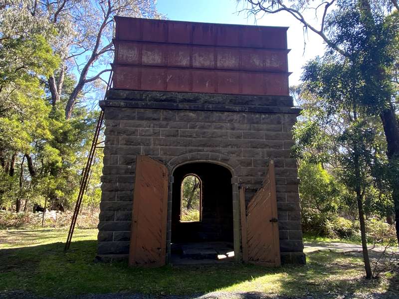 This historical bluestone water tower was built in the 1860s to supply steam trains with water on the Geelong / Ballarat railway line. It's amazing that the very high ladder on the side of the building is accessible for those brave enough to climb it.