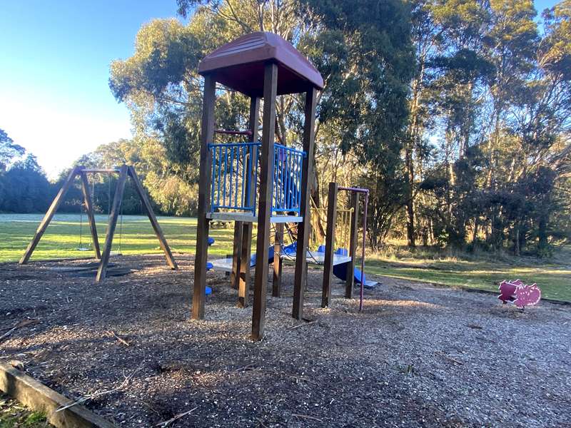 Th playground has a structure with two levels. The highest level with a steering wheel can be reached by disks on a vertical pole or a rope bridge from the lower platform with little slide, fireman's pole and slanting walkway. Also a dragon springer and swings.
